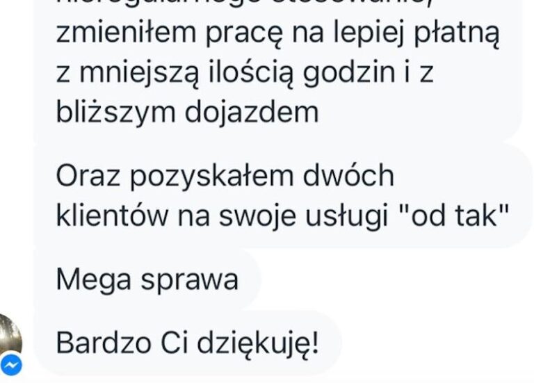 Ten kurs to nie tylko złoto dla Twojego Biznesu, ta wiedza i proces, które tam przejdziesz będą miały diametralny wpływ na inne obszary Twojego życia – Twoje samopoczucie, a nawet Twoje relacje, Twoje życie prywatne – bo to wszystko jest jak system naczyń połączonych – wszystkie obszary w Twoim życiu mają na siebie wzajemny wpływ — jeżeli czujesz się źle, jeżeli coś w Twoim życiu prywatnym się sypie, to prędzej czy później odbije się to negatywnie na Twoim biznesie. Ale jeżeli Ty jesteś szczęśliwy, rozkwitasz, masz w sobie dużo spokoju i harmonii – Twój biznes także rozkwitnie i będzie funkcjonował harmonijnie.