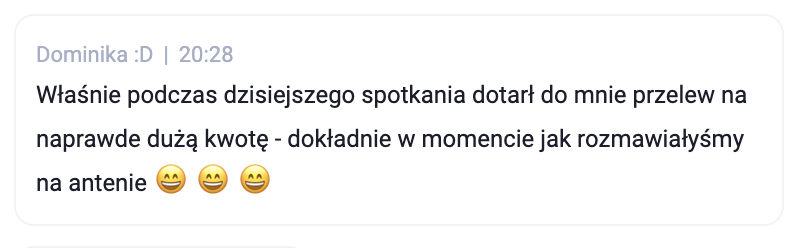 Dziś nie mogę wyjść z podziwu jak ogromnym źródłem obfitości jest dla mnie mój biznes. Nie tylko pod względem finansowym – obfitość płynąca z mojego biznesu wykracza daleko poza aspekt finansowy.
