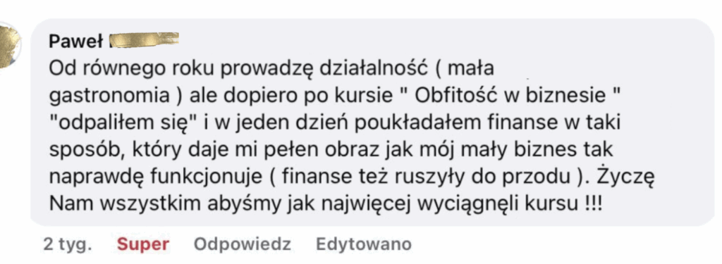 Efekty osób po pracy ze mną w aspekcie finansów i biznesu: