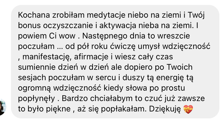 Cieszę się, że pragniesz otworzyć się na swoje NIEBO NA ZIEMI i zapraszam Cię z serca w tą niezwykle transformującą przestrzeń