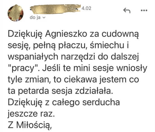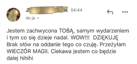 Ponieważ na mojej stronie i mediach społecznościowych widać multum niezwykłych efektów i opinii – wiele osób prosiło mnie o stworzenie kursu, który pozwoli uwolnić wiele z tych powszechnych blokad, a także wydobędzie tą moc manifestacji i otworzy na życie pełne cudownych manifestacji.