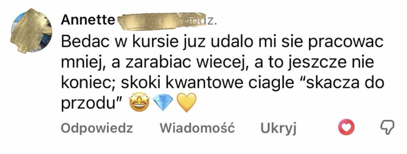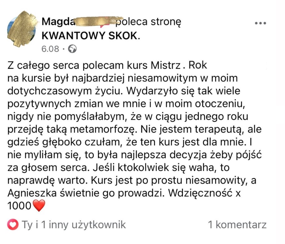 Każdy kurs jest objęty prawami autorskimi i nie może być powielany, kopiowany ani emitowany bez zgody autora. Zamawiając kursy wyrażasz zgodę na to, że wykorzystywane będą jedynie przez Ciebie, bądź osobę, która otrzyma ją od Ciebie w prezencie. Nie tylko z szacunku do wielu lat mojej pracy i badań, których produkt ten jest owocem, ale także po to, aby w pełni wykorzystać potencjał kursu. Dzieląc się sesjami z innymi osobami nie wykorzystujesz w pełni ich potencjału ze względu na brak równej wymiany energetycznej.