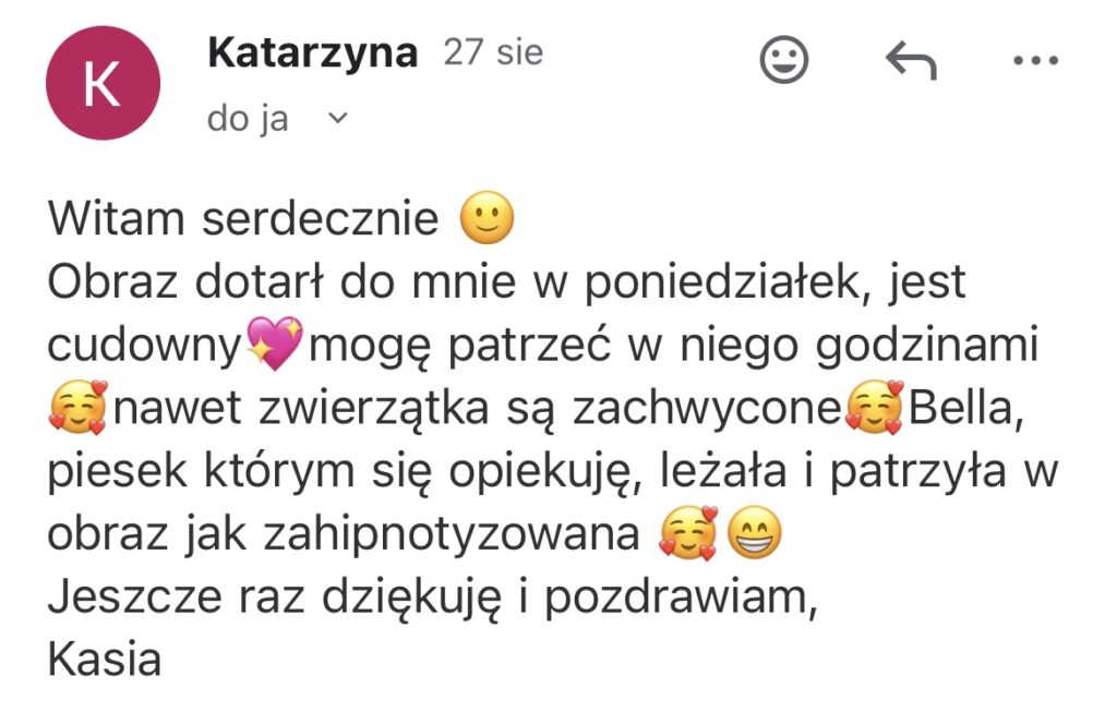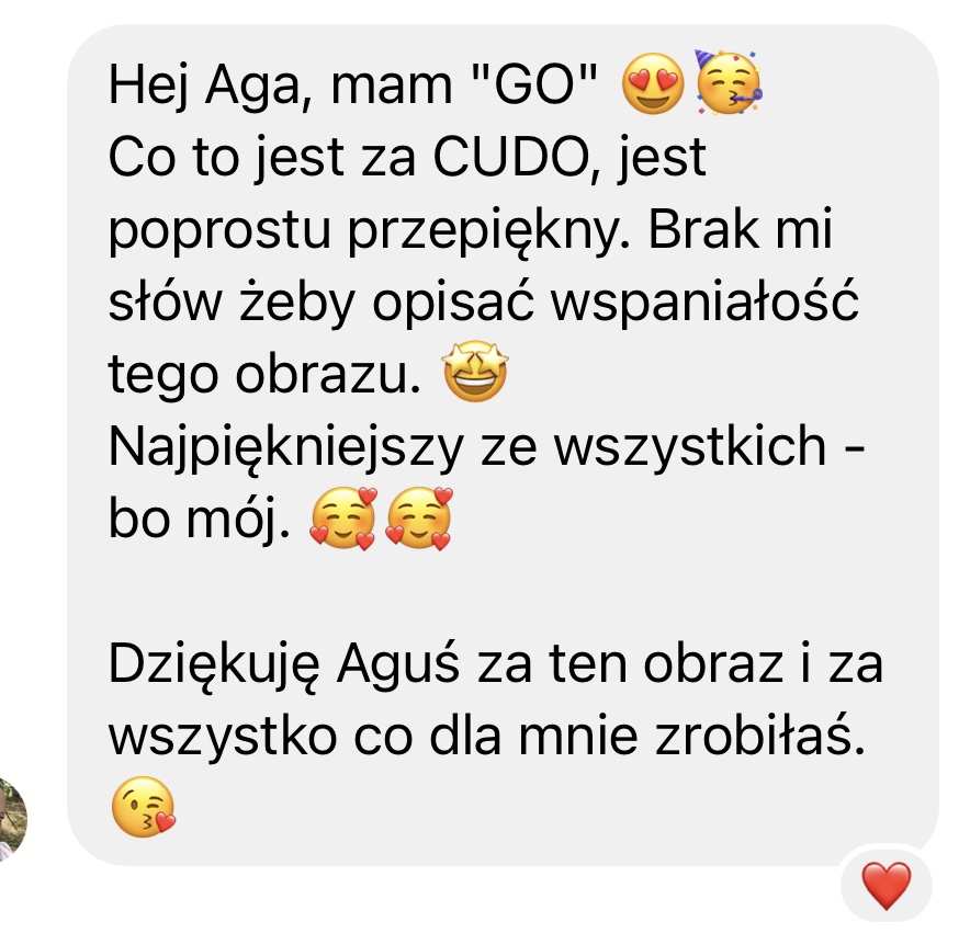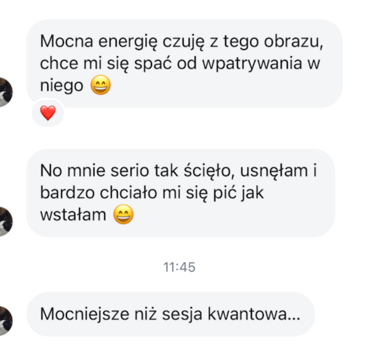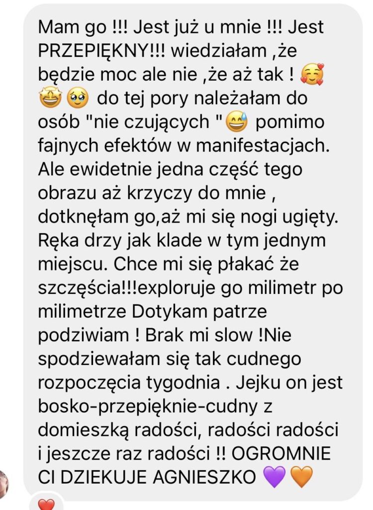 Na obrazie możesz zobaczyć wulkan z wybuchającą lawą - nie był to mój zamysł - motyw powstał tak zwanym przypadkiem. Pierwszego dnia kiedy postawiłam obraz w sypialni - nie mogłam zasnąć. Kiedy zadałam pytanie "dlaczego, przecież zawsze dobrze sypiam" - pojawiła się odpowiedź - „wynieś obraz z sypialni”. Po wyniesieniu zasnęłam jak dziecko :). Jego moc i energia jest niezwykła, dlatego zalecam, aby wieszać go w pokoju dziennym lub w gabinecie.
